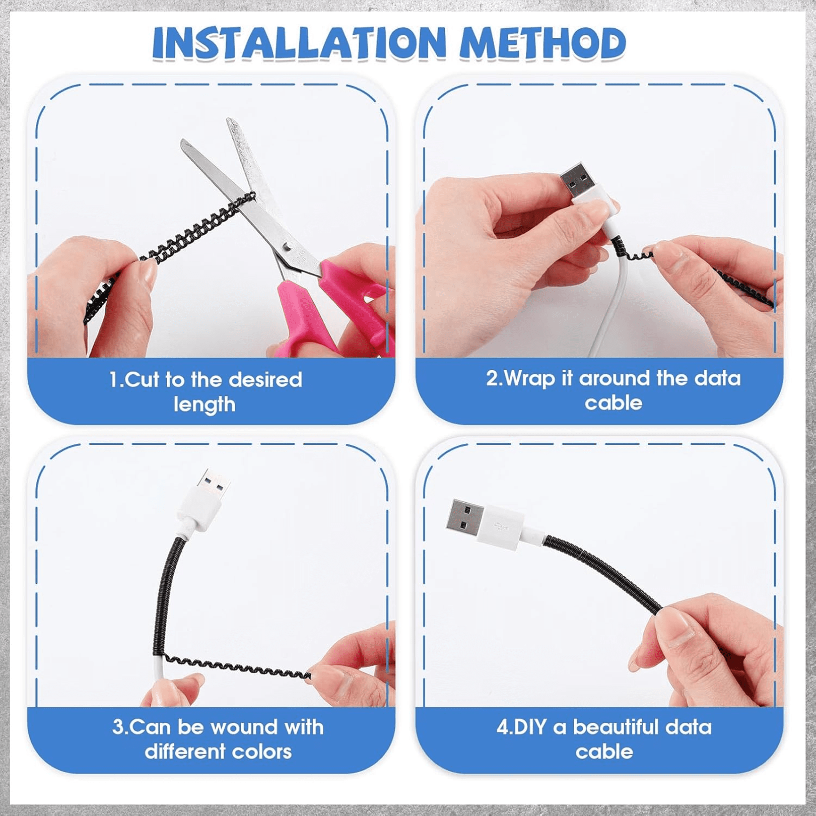 Metallic Finish Cable Spiral Protector/Wire Repair/Pet Cord Protector/Headphone Saver, Cable Wrap/Cover for Mac Charging Cable
