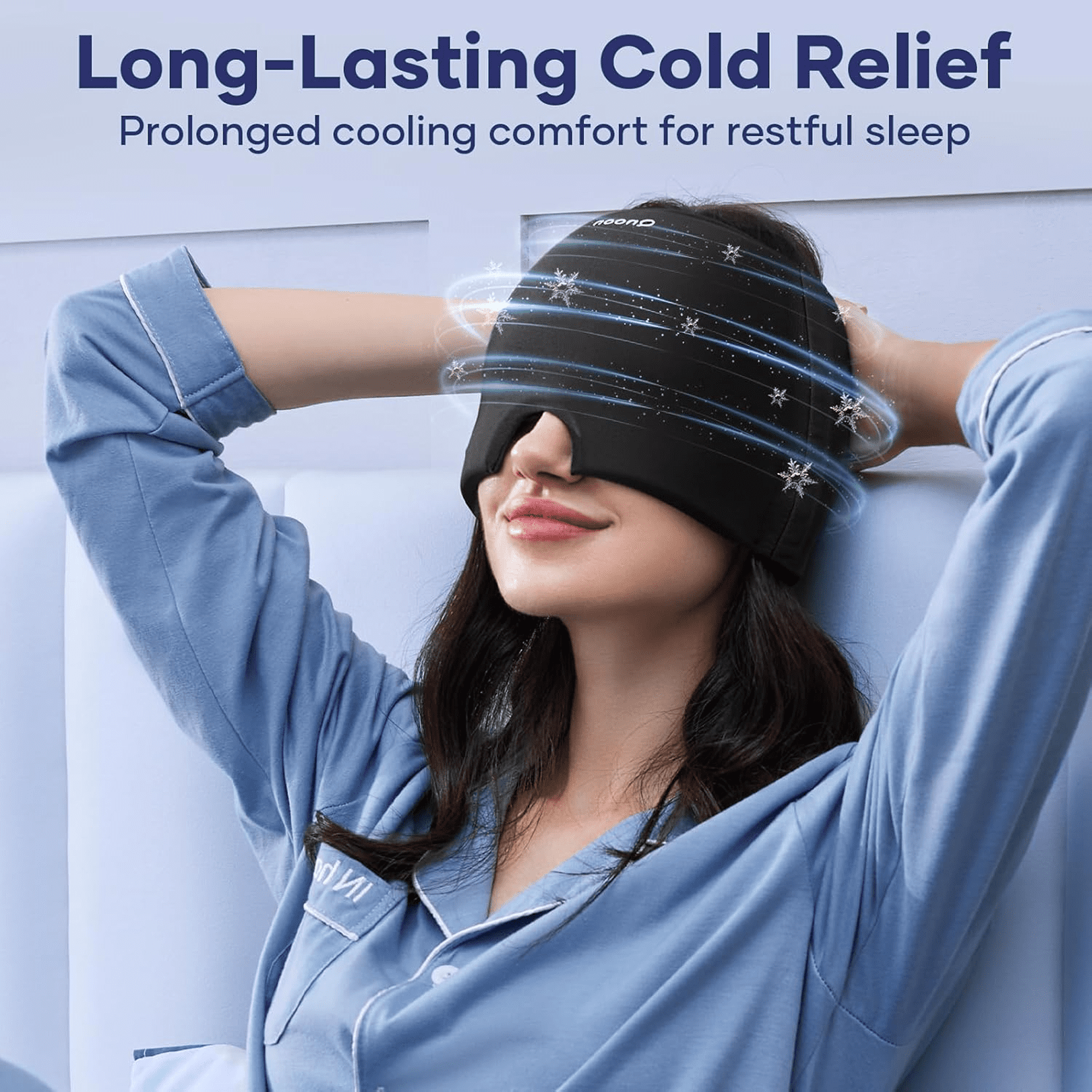 - This is a wearable mask. It’s stretchable with double seams lets it fit every face, head & eye. Cap is one size fits all. If you are not comfortable with its size, return it for a full refund. Their ICE cold flexible ice pack cap provides 360° natural cooling while resting comfortably. The product’s slip-on design means no messy wraps or uncomfortable ice packs, inserts or awkward band straps.
