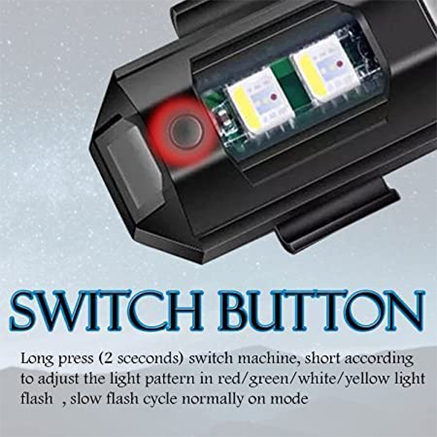 - Smaller Size & Brighter Lights: super Light Weight, won’t cause extra burden to the drone and takes the space to the bike. The aircraft strobe light adopts premium led chip-set, light effects & brightness will be better. Different light color