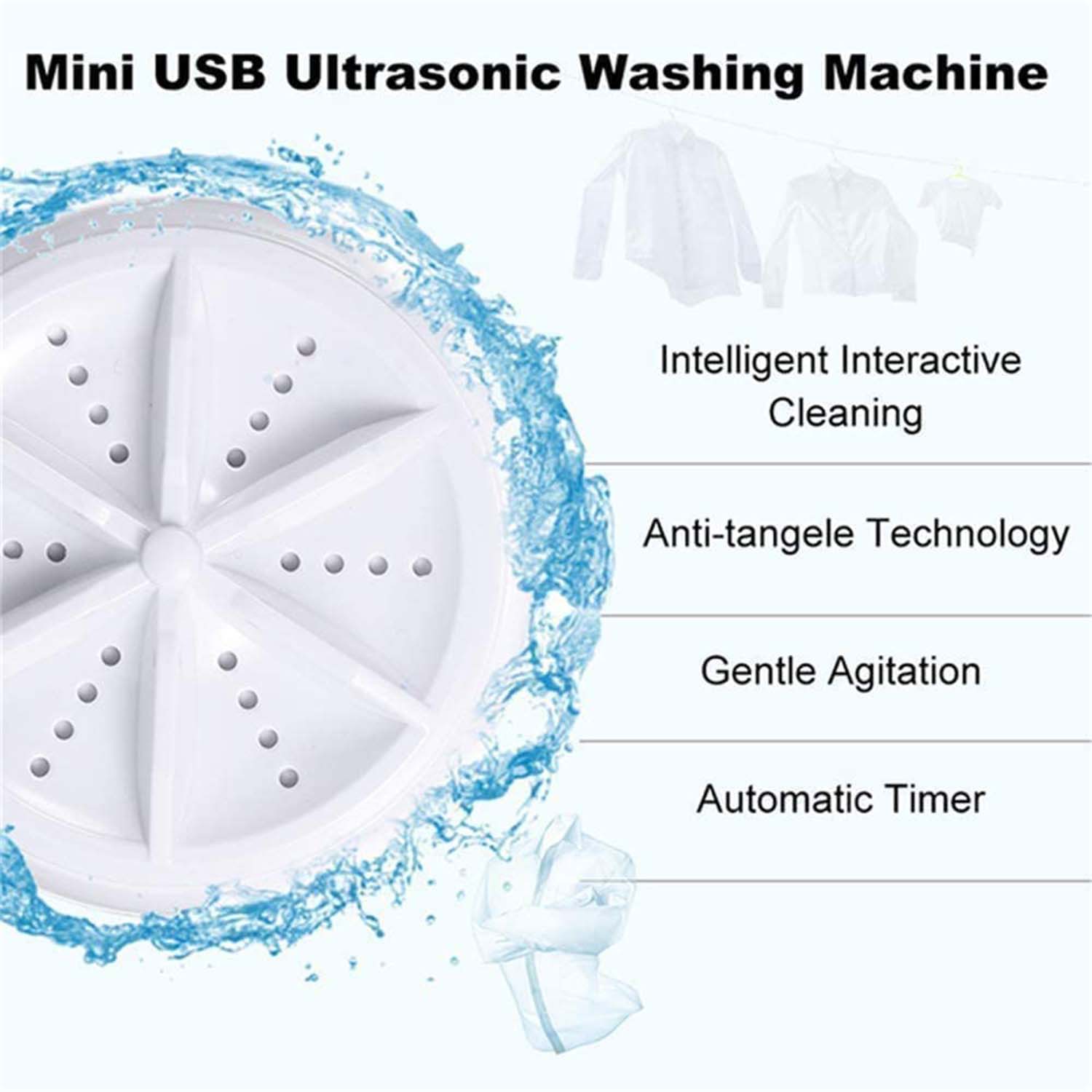 Efficiently clean clothes with a mini turbo washing machine. USB-powered and perfect for home, camping, college, and small spaces.