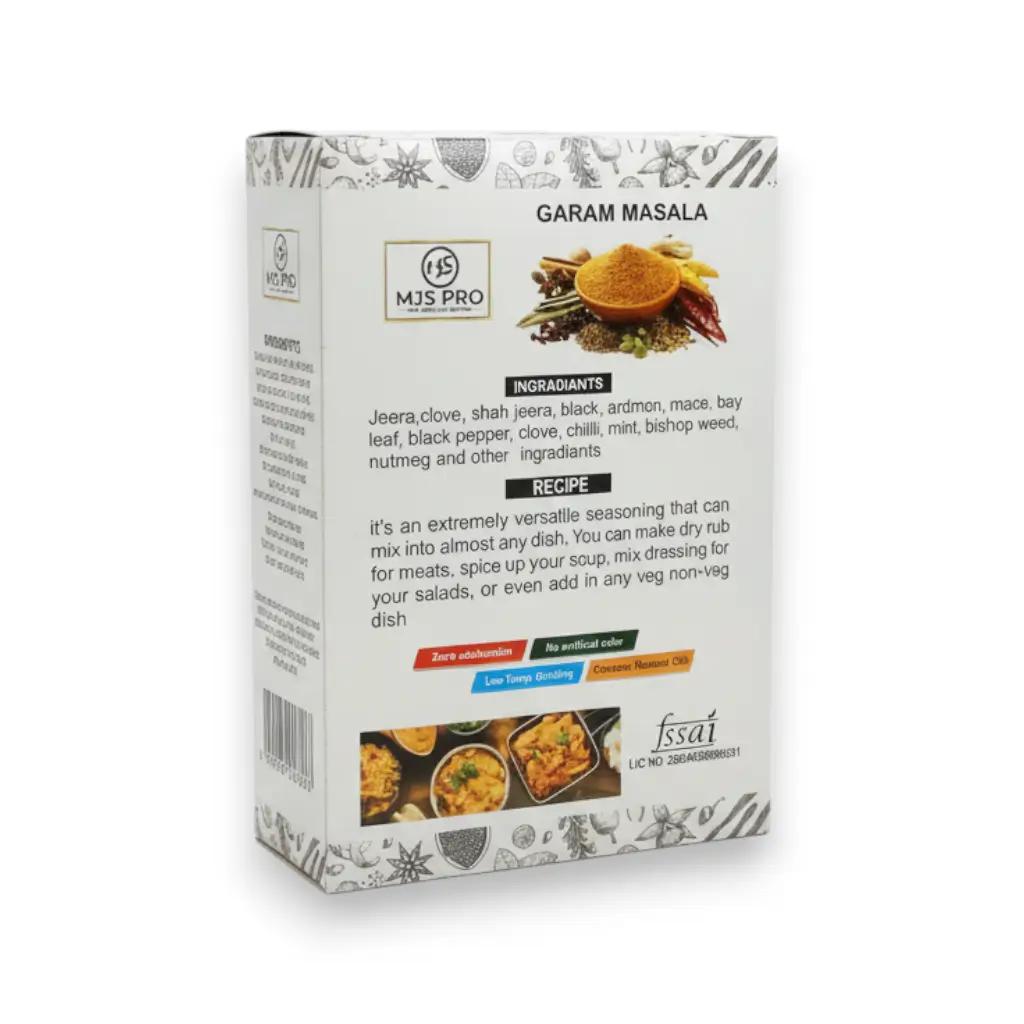 MJS Pro Garam Masala is a classic Indian spice blend prepared using traditional recipes and premium whole spices to deliver rich aroma, warm flavor, and authentic taste. Carefully roasted and ground in precise proportions, this garam masala enhances the depth of flavor in every Indian dish.