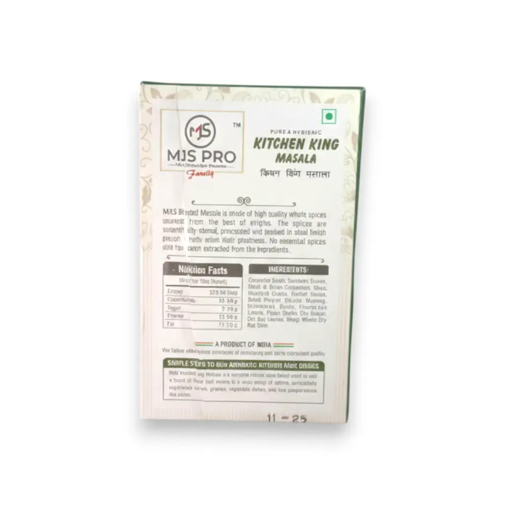 Whether you’re cooking paneer, mixed vegetables, gravies, dals or special curries, MJS Pro Kitchen King Masala adds depth, warmth and restaurant-style flavor. Hygienically processed and airtight packed, it retains natural oils and freshness, delivering consistent taste every time.