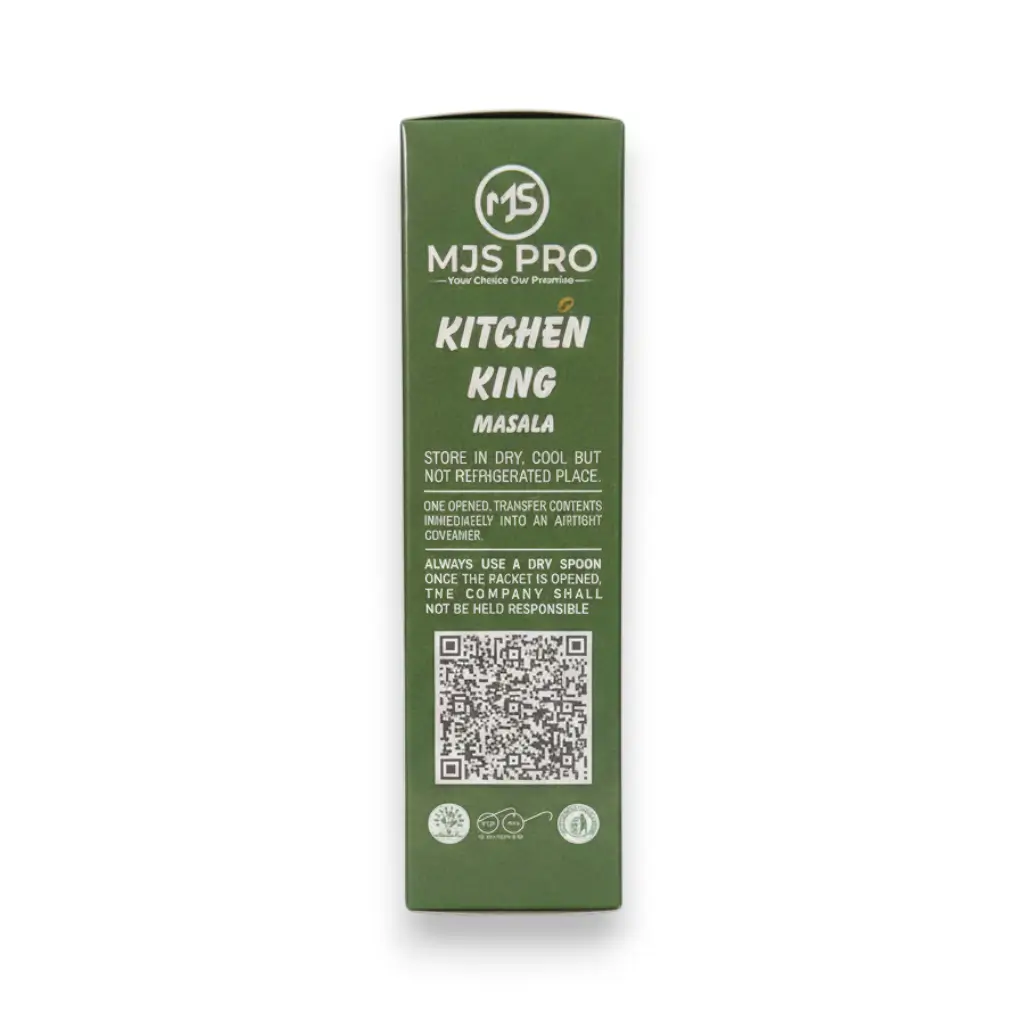MJS Pro Kitchen King Masala is a versatile, premium spice blend specially crafted to bring rich flavor, aroma and royal taste to everyday Indian cooking. Made using authentic Indian recipes and high-quality whole spices, this masala acts as a single solution for multiple curries and sabzis.
