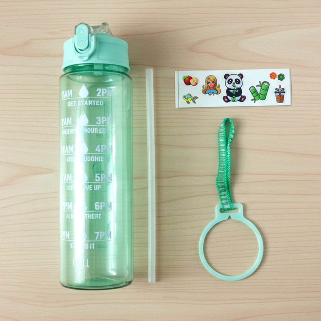 Stay hydrated throughout the day with this 1000 ML motivational water bottle designed with clear time markers to help you track your daily water intake. The bottle features an easy flip top lid with secure lock mechanism for convenient one-hand operation. Built with a sturdy body and leakproof design, it is suitable for daily use at home, office, gym or outdoor activities. The integrated straw allows smooth sipping, while the carry strap makes it easy to take anywhere. Its practical and stylish design encourages consistent hydration and supports an active lifestyle.