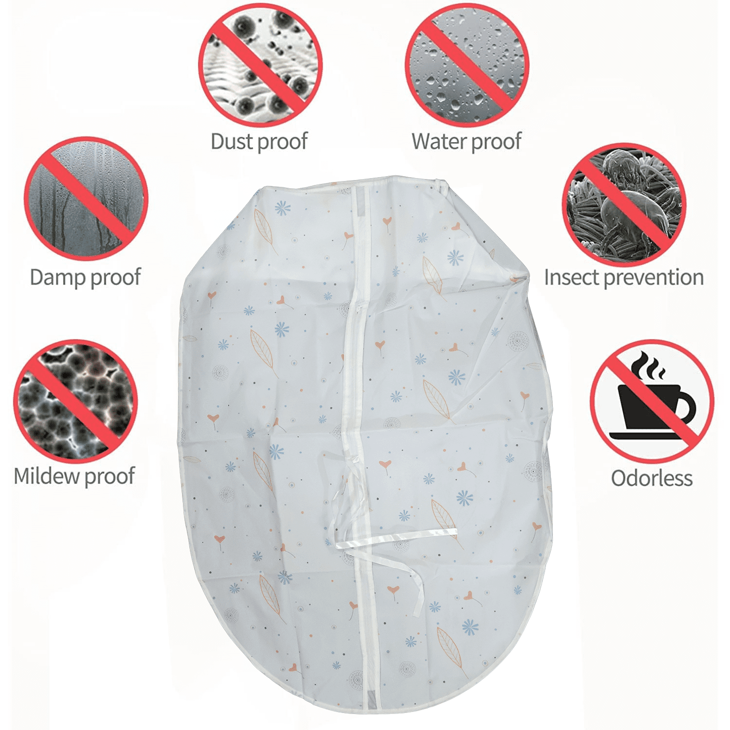 This multipurpose garment storage cover is designed to keep your clothes neatly protected from dust, moisture, insects, and daily wardrobe exposure. Made from breathable non-woven fabric, it helps maintain fabric freshness while allowing proper air circulation. The transparent printed design allows quick identification of stored garments without opening the cover, making wardrobe management easy and organized.