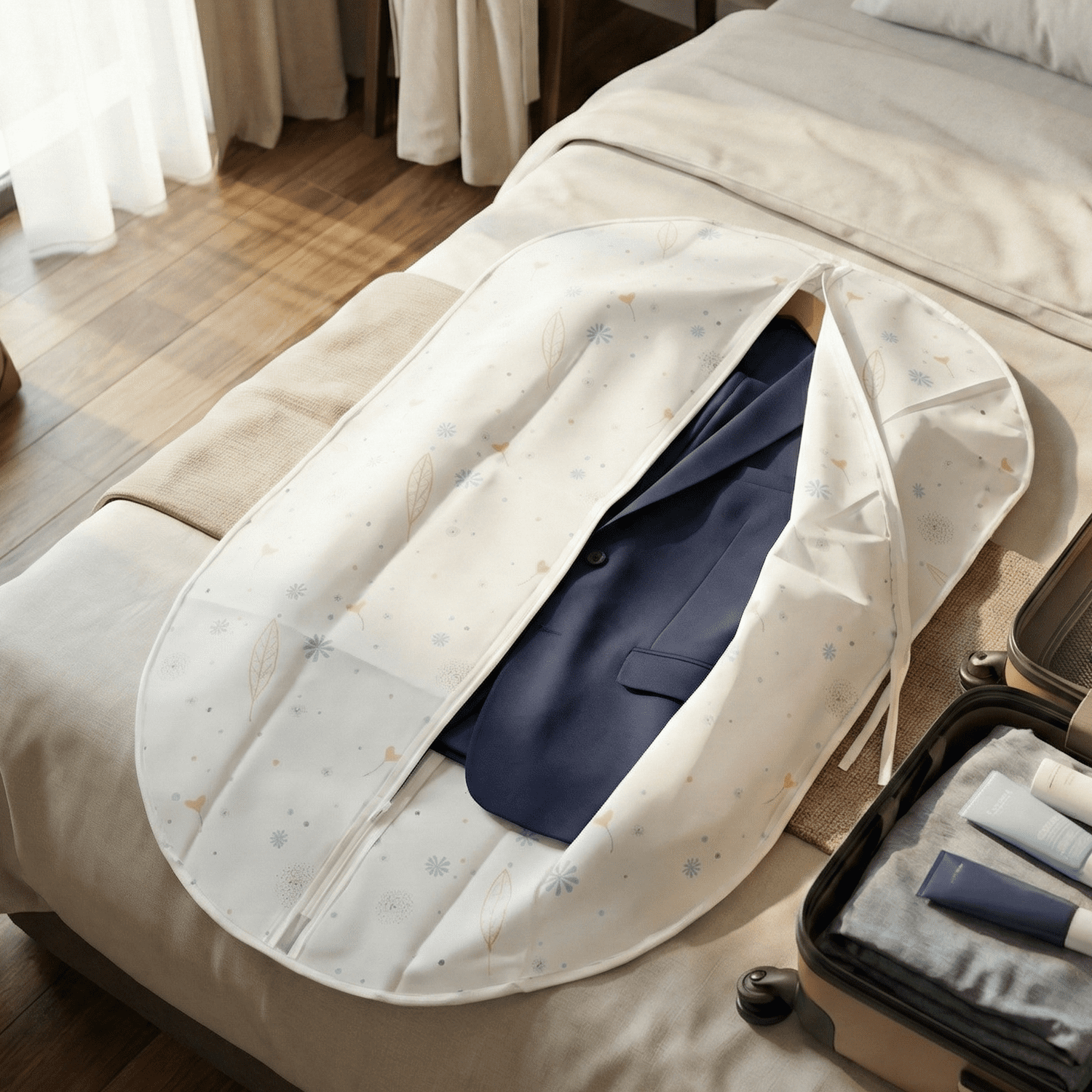 The front zip closure ensures smooth access while securely sealing garments inside. Lightweight yet durable, this storage cover is ideal for both home wardrobes and travel packing. It helps prevent wrinkles, keeps clothes clean, and extends garment life, making it a practical storage solution for everyday clothing care.