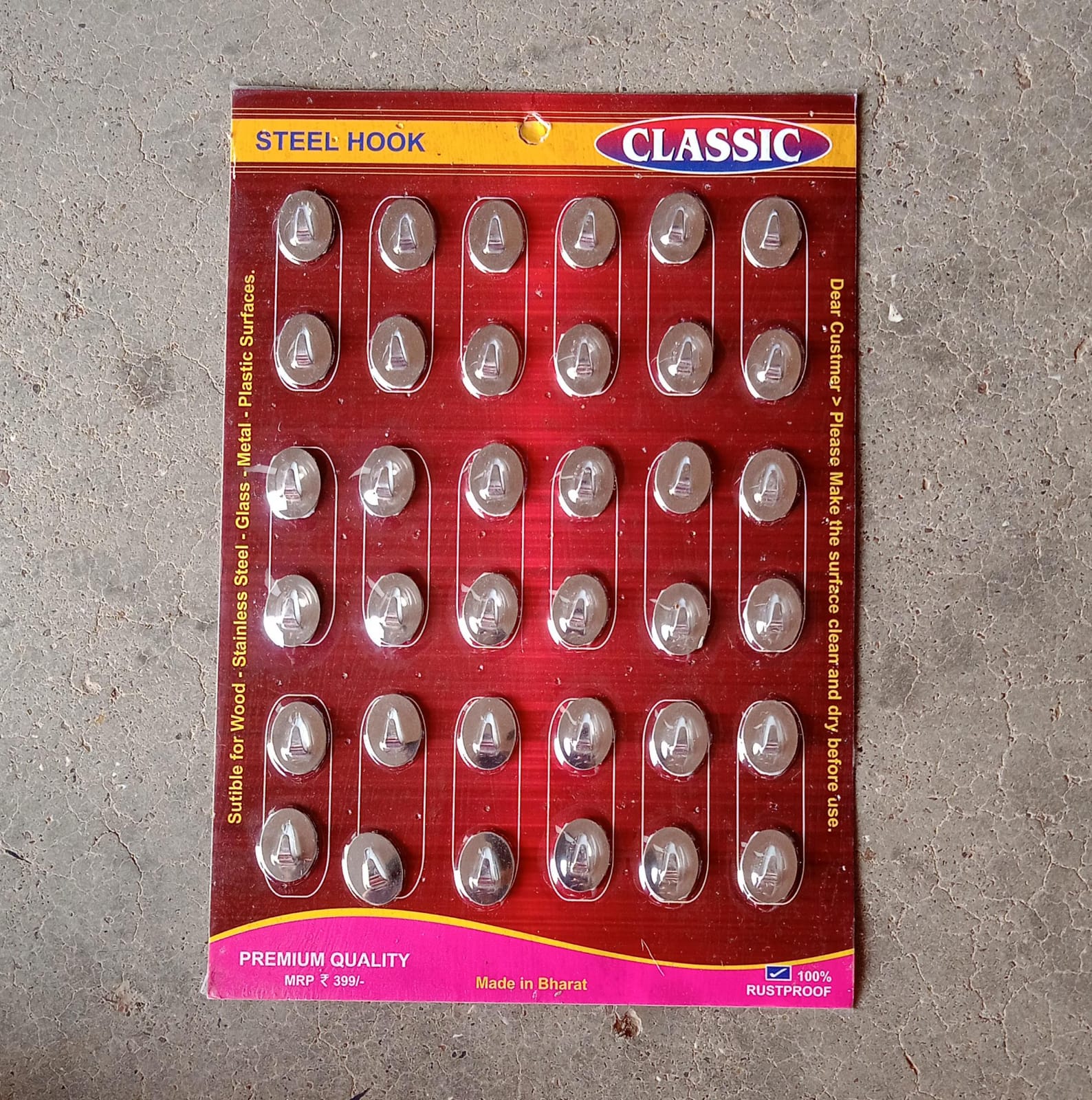 • Hooks can be sticked on to surfaces like Wood , Glass , Stainless Steel , Metal , Plastic.