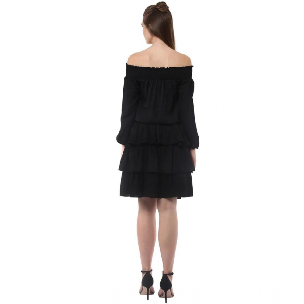 NariHaat Black Off Shoulder Dress for Women | Stylish Polyester Moss Long Sleeves Gown