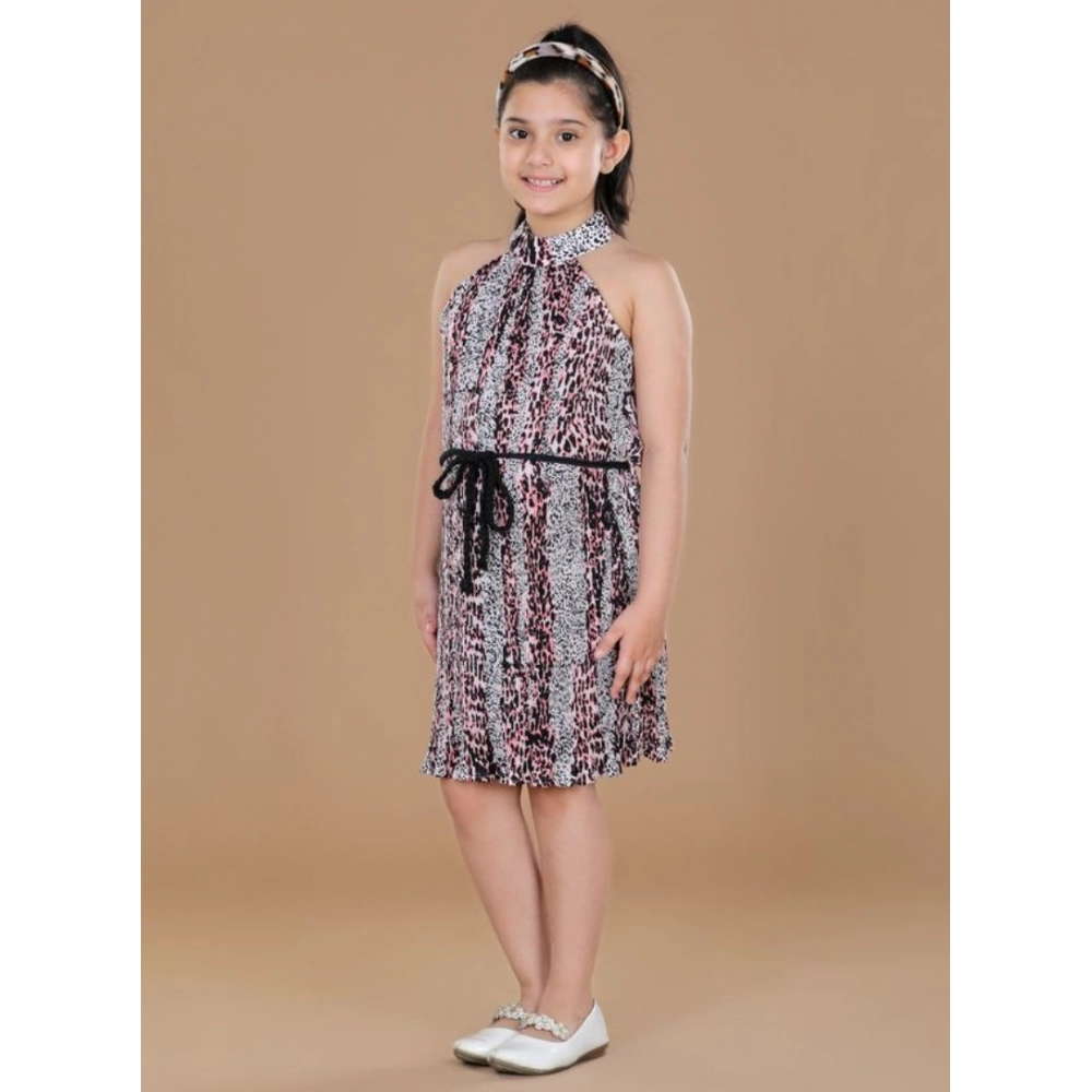 NariHaat Girls Black Pink Dress – Printed Polyester Crepe Sleeveless Frock