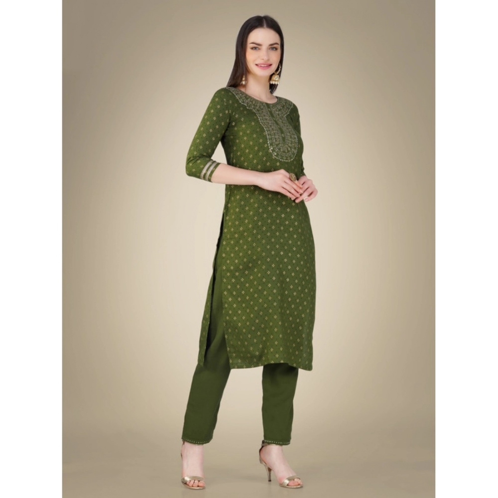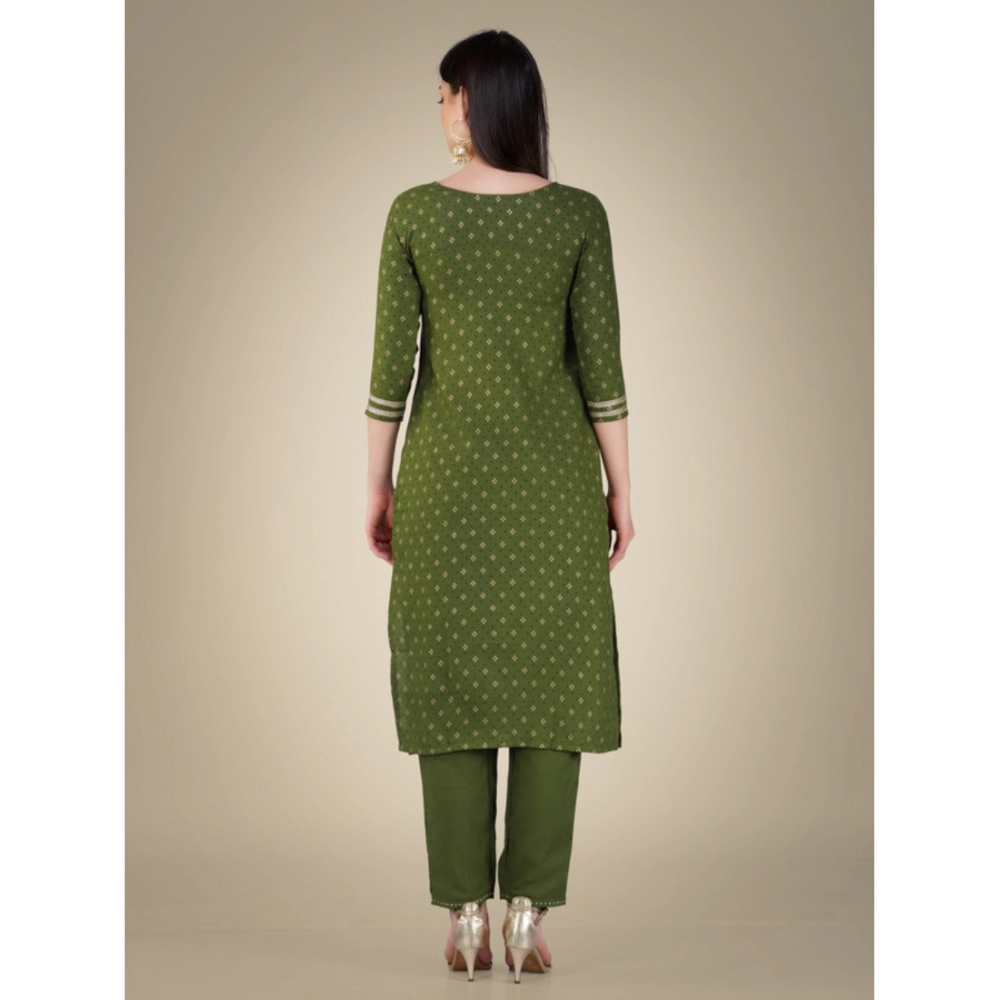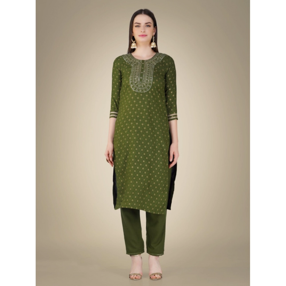Elevate your everyday style with the NariHaat Green Cotton Kurti Set, featuring charming embroidery and a comfortable 3/4th sleeve design. This complete ethnic set, including kurti, pant, and dupatta, offers effortless elegance for any casual occasion.