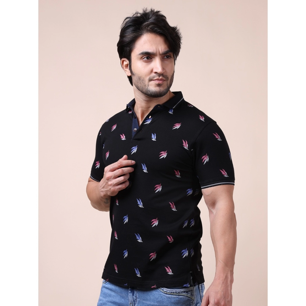 NariHaat Mens Printed Polo T-Shirt Black Cotton Half Sleeve for Casual Wear