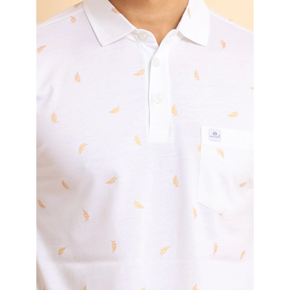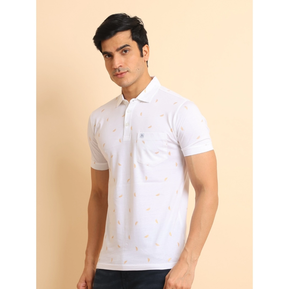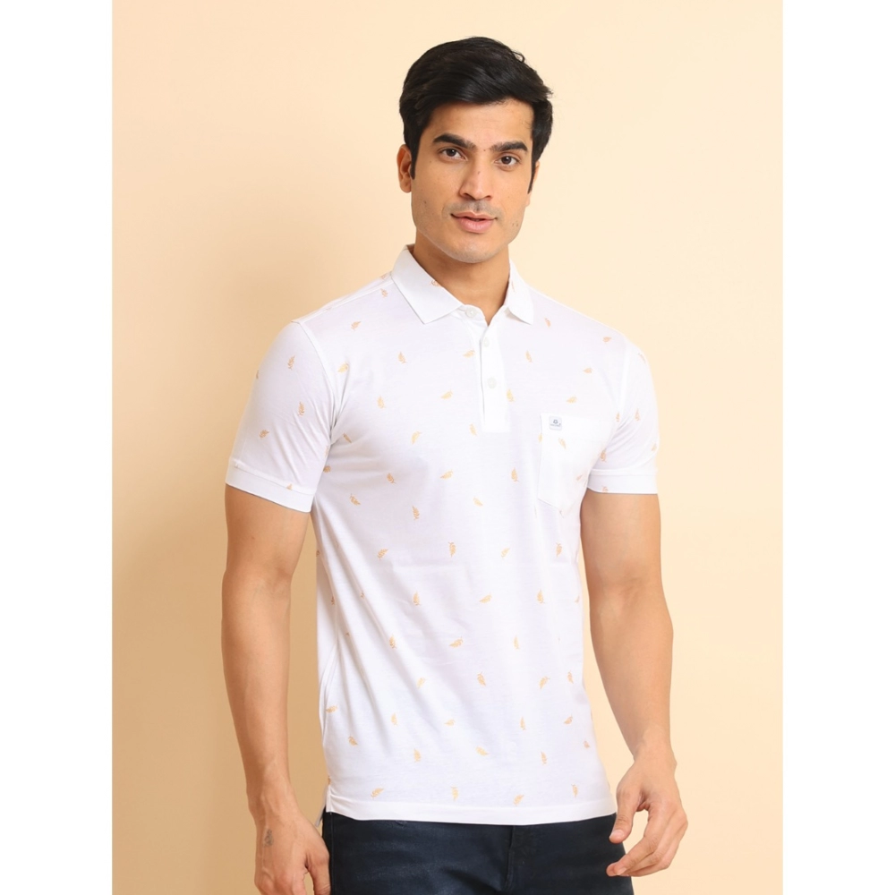 NariHaat Men’s Printed Polo T-Shirt Casual Cotton Half Sleeve White
