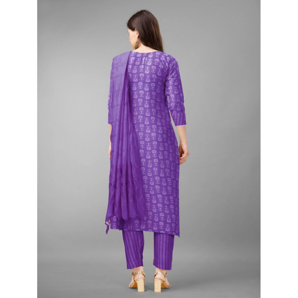 Elevate your ethnic wardrobe with this beautiful NariHaat Purple Kurti Set for Women, featuring intricate embroidery on soft rayon fabric. This complete three-piece outfit includes a kurti, pant, and matching dupatta for effortless style.