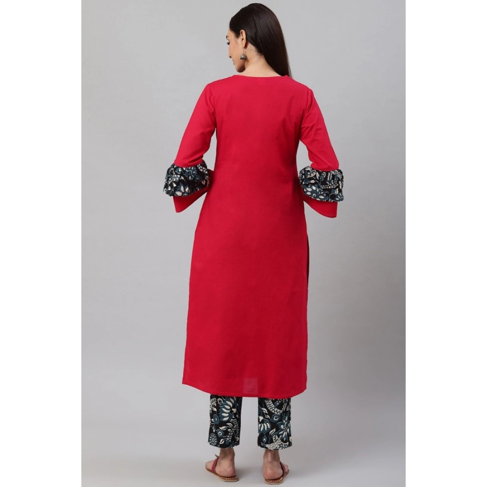 NariHaat Rani Pink Kurti Set for Women – Floral Bell Sleeves Cotton Casual