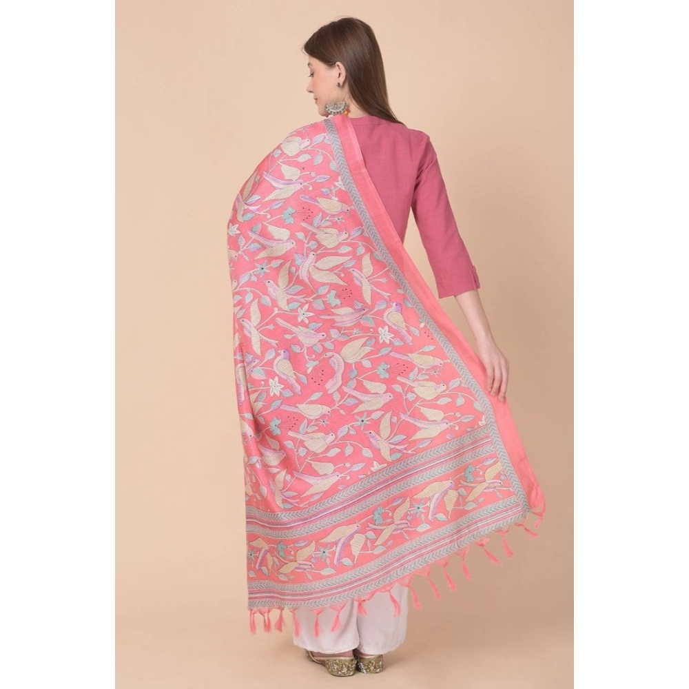 NariHaat Women’s Art Silk Pink Printed Dupatta – 2.25-2.5 Mtr