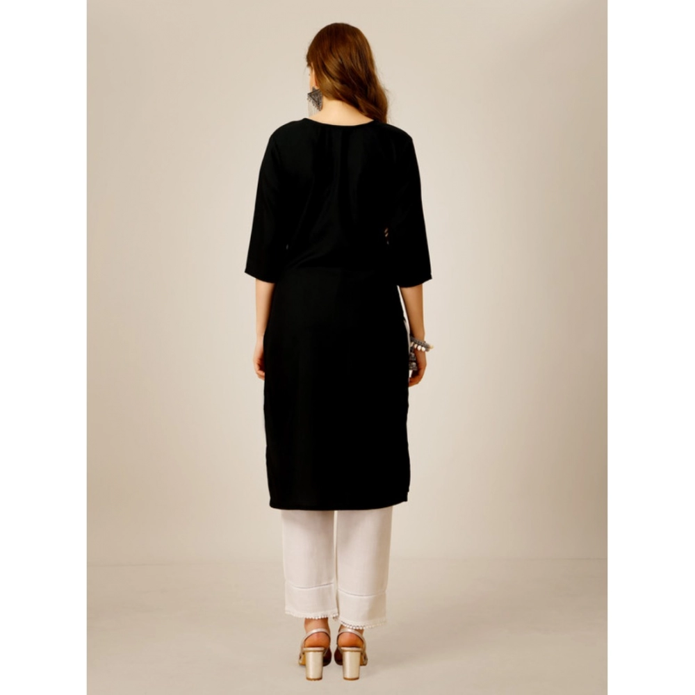 NariHaat Women’s Black Embroidered 3/4 Sleeve Cotton Kurti Pant Set