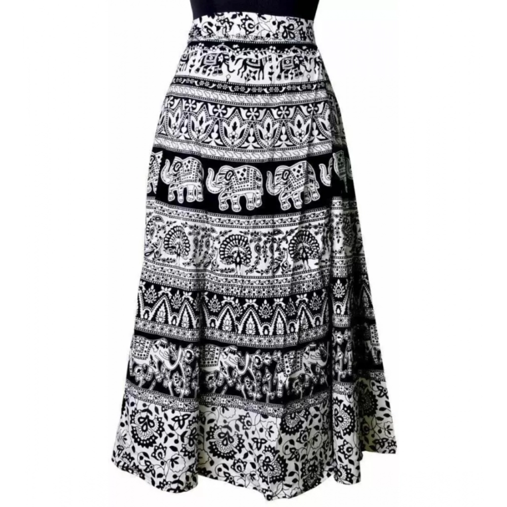 NariHaat Womens Black Jaipur Printed Cotton Wrap Around Maxi Skirt Free Size