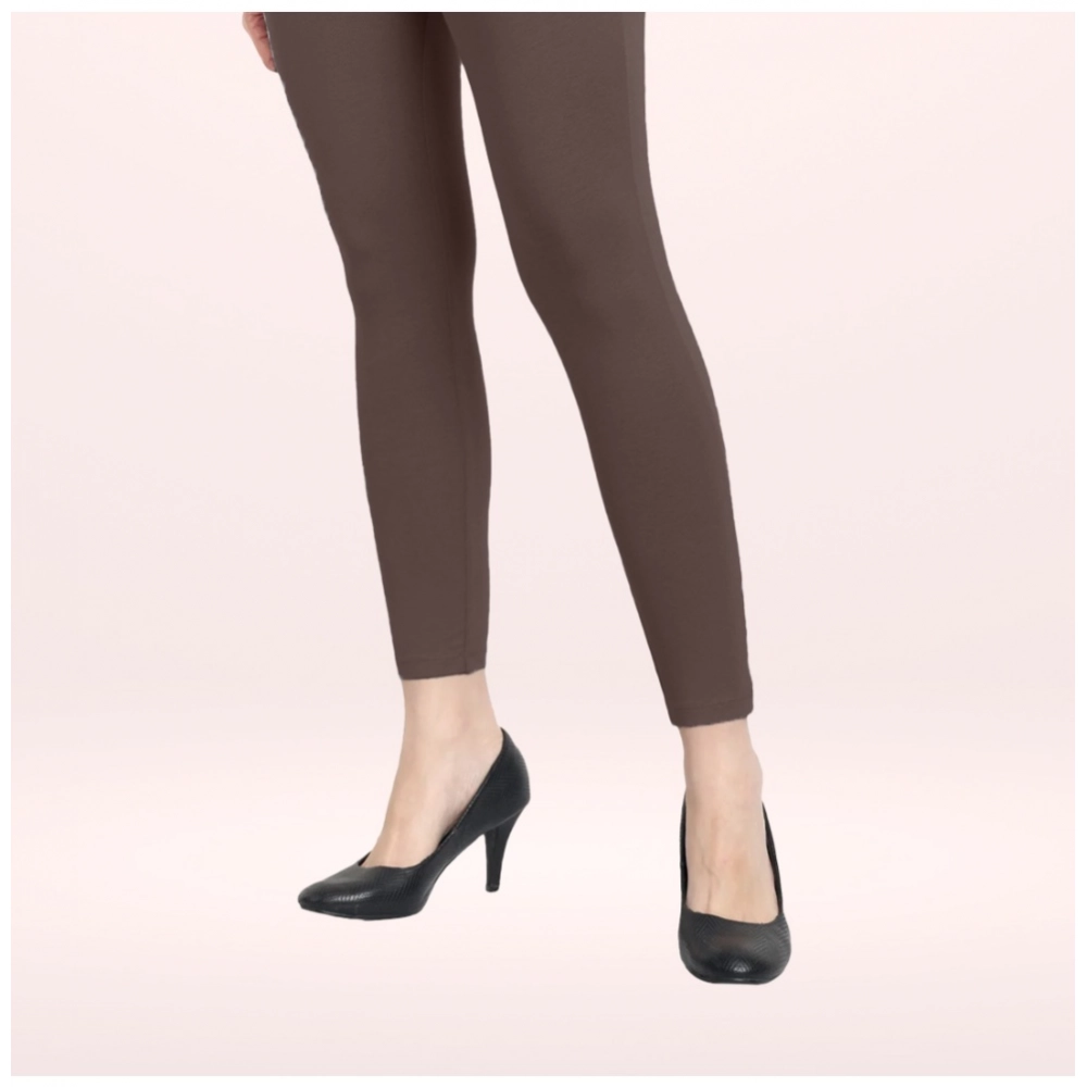 NariHaat Women’s Brown Ankle Leggings – Cotton Blend Solid