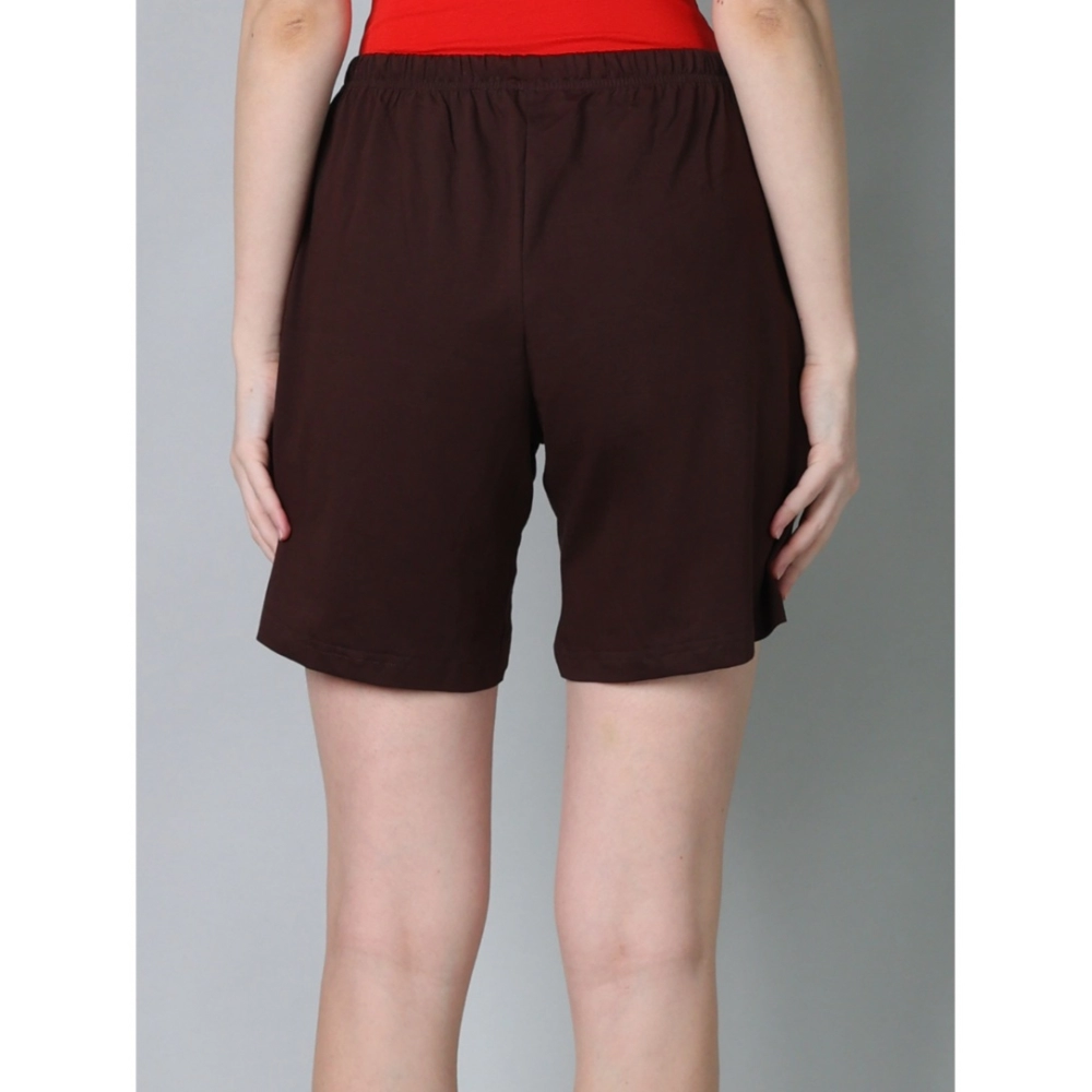 NariHaat Women’s Cotton Above Knee Solid Brown Shorts
