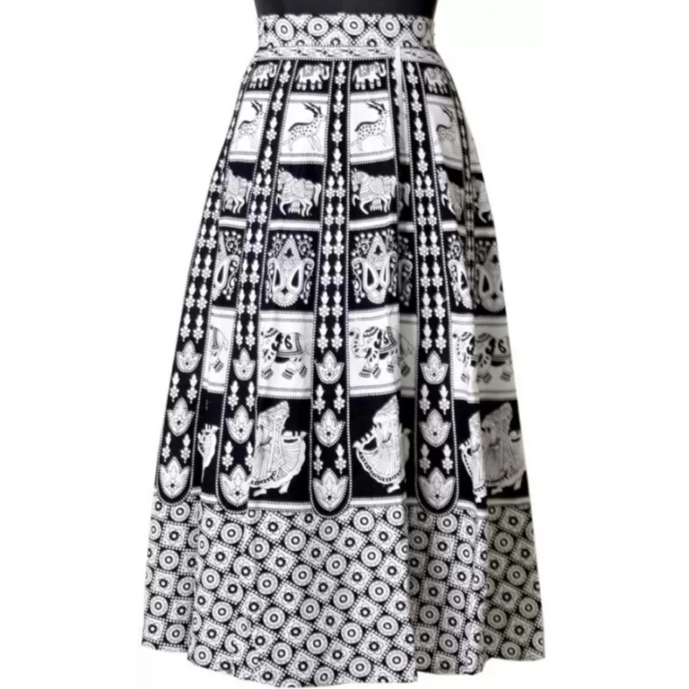 NariHaat Women’s Cotton Jaipur Print Wrap Around Maxi Skirt – Black, Free Size