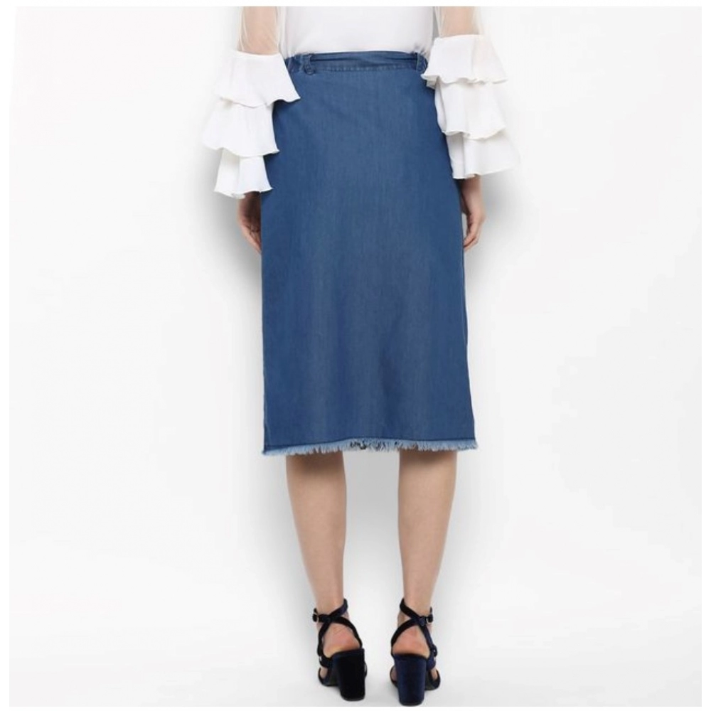 NariHaat Women’s Denim Washed Buttoned Skirt Blue for Casual Wear