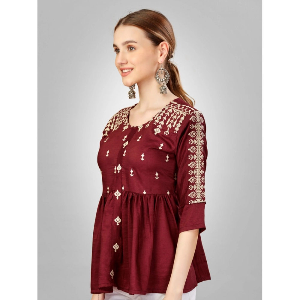 NariHaat Women’s Embroidered Silk Tunic Top Rust 3/4 Sleeve Casual