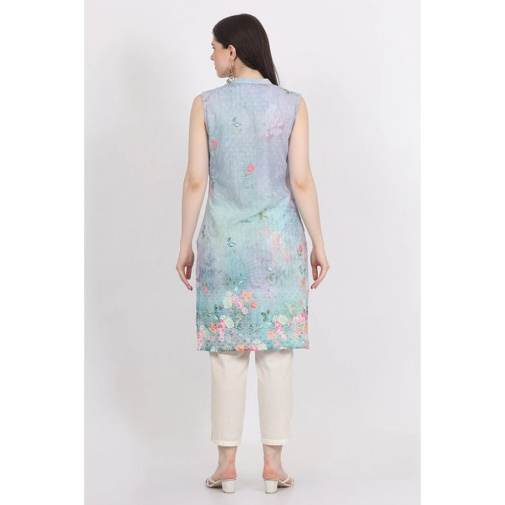 NariHaat Women’s Green Cotton Blend Printed Sleeveless Casual Kurti