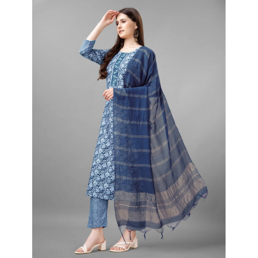 NariHaat Women’s Light Blue Rayon Embroidered Kurti Pant Dupatta Set