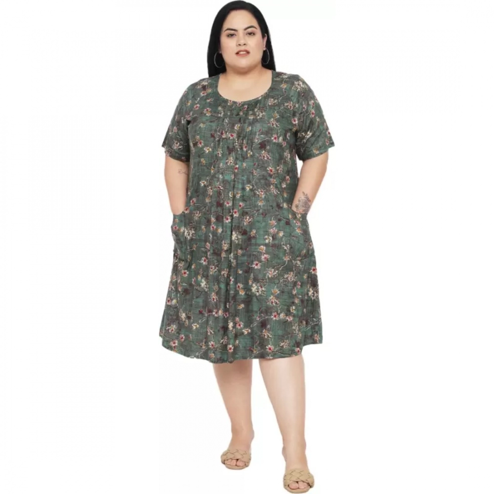 NariHaat Women’s Plus Size Green A-Line Rayon Dress