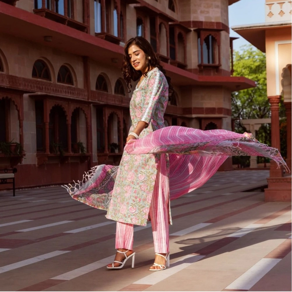 Embrace casual elegance with this NariHaat Women’s Printed Cotton Kurti Set in a delightful pink hue, featuring comfortable 3/4th sleeves. Crafted from soft, breathable cotton, it’s perfect for everyday style and relaxed outings.