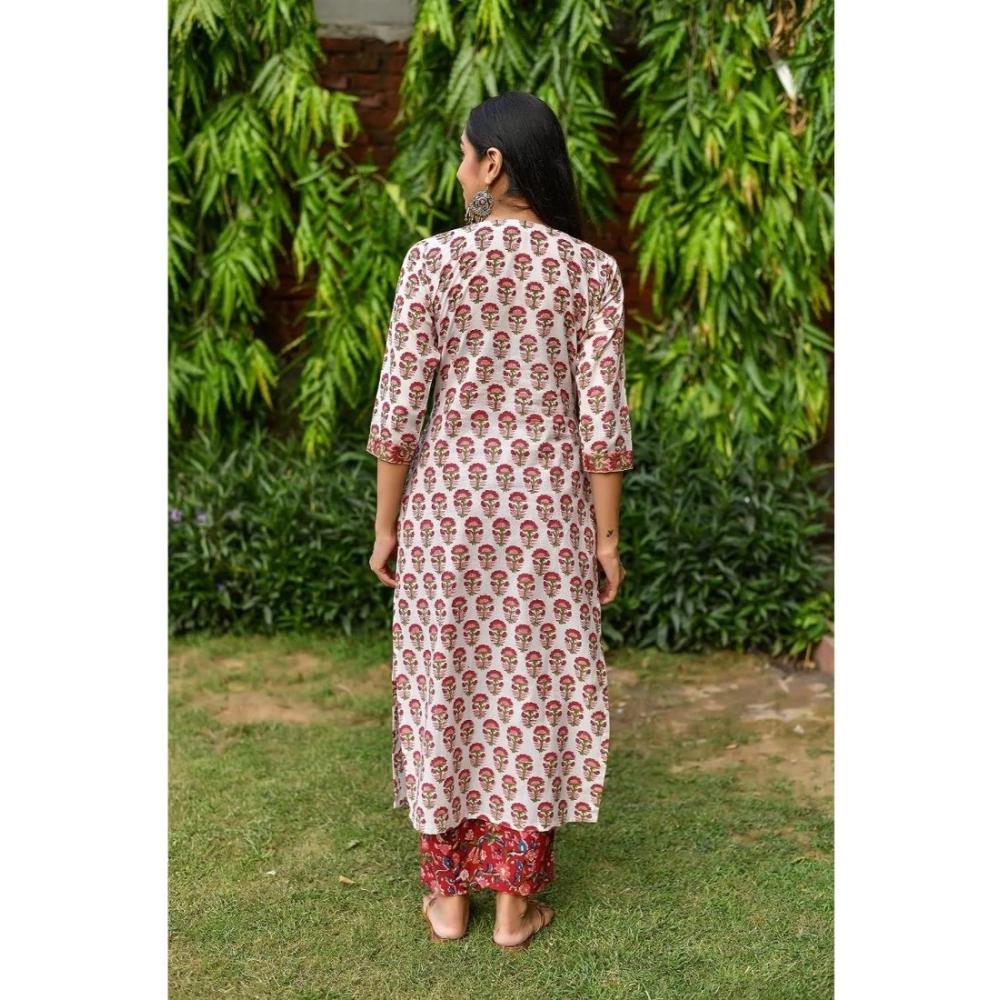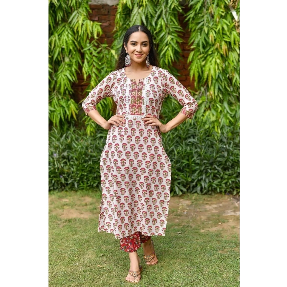 NariHaat Women’s Printed Cotton Kurti Set Red Casual 3/4 Sleeve