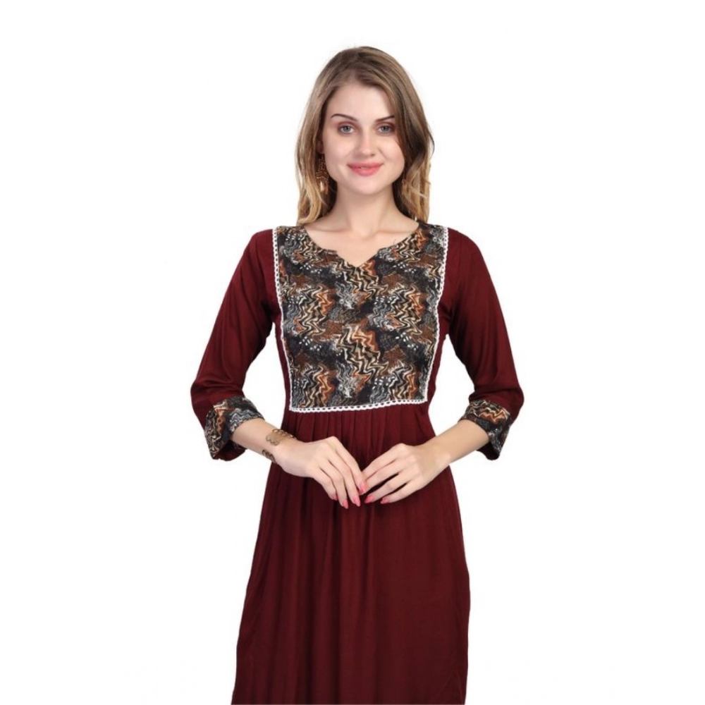 NariHaat Women’s Printed Kurti Viscose Rayon 3/4 Sleeve Brown Casual