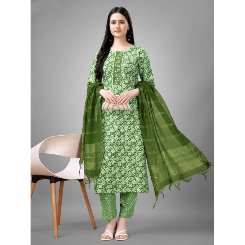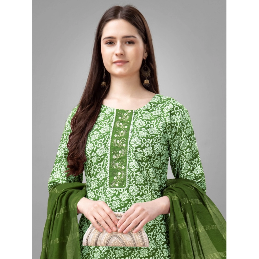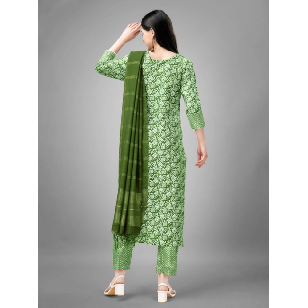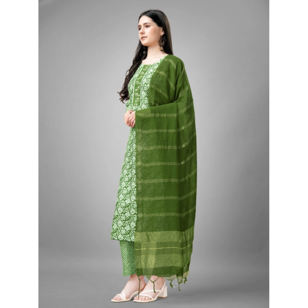 NariHaat Women’s Rayon Kurti Set – Green Embroidered 3/4 Sleeve with Pant & Dupatta