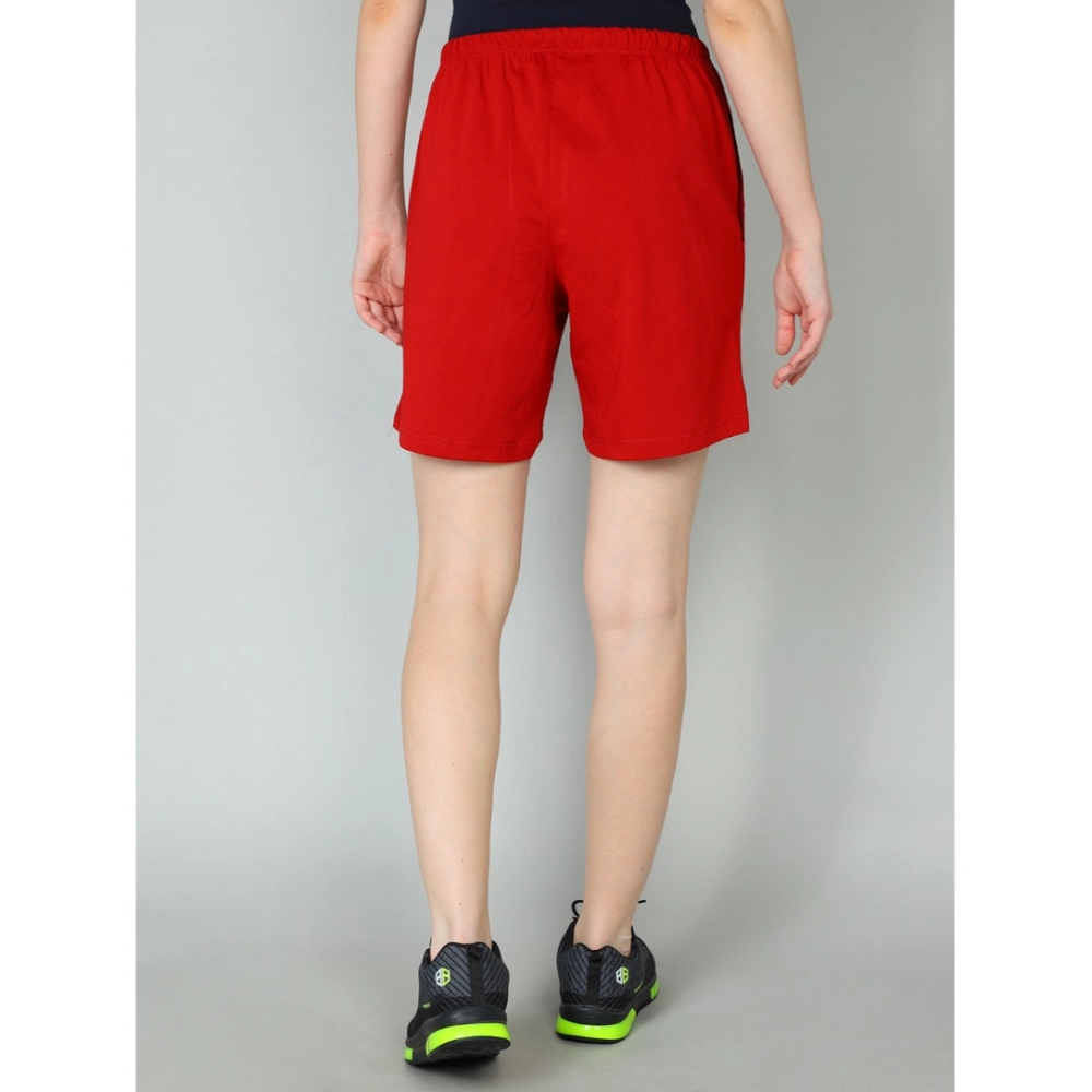NariHaat Women’s Red Cotton Solid Above Knee Shorts