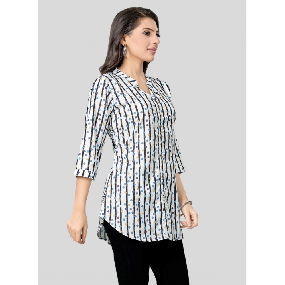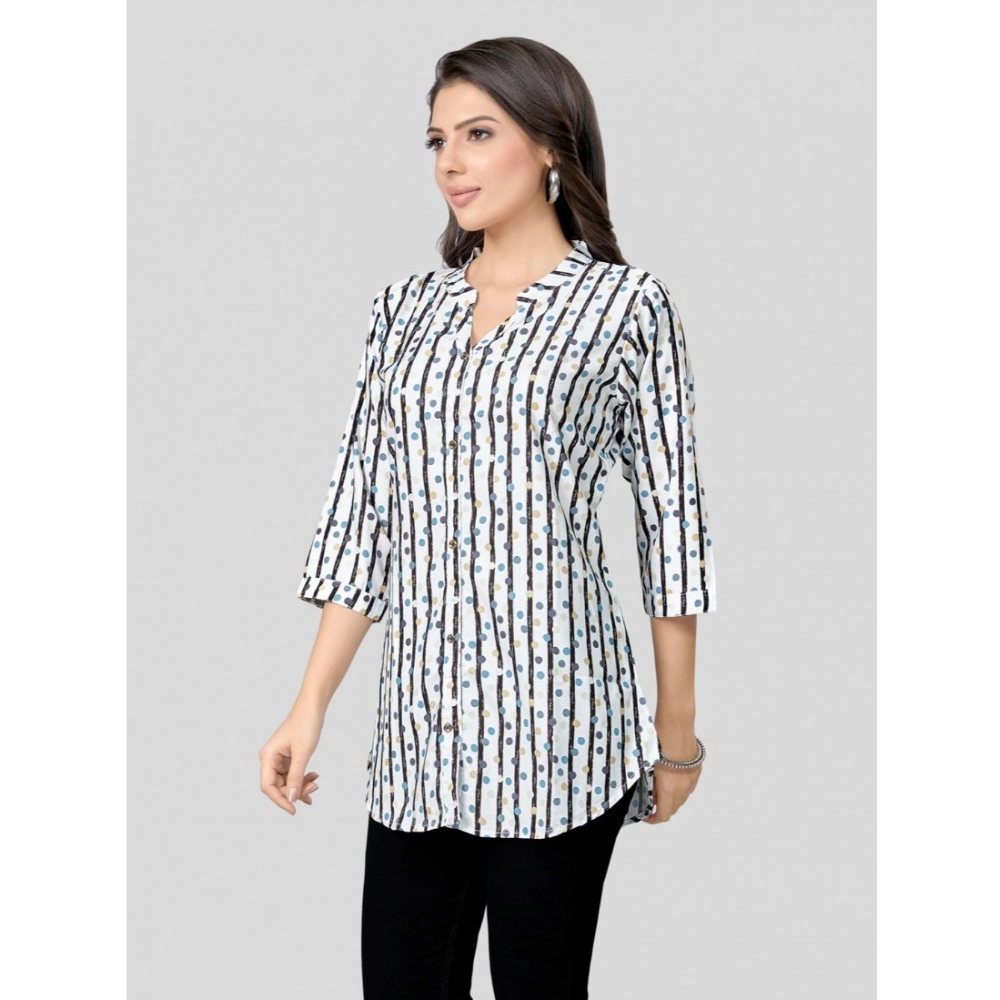 A1: Yes, the elegant mandarin collar and sophisticated design make this Women’s White Crepe Top a great choice for smart casual office environments, especially when paired with tailored trousers or skirts.