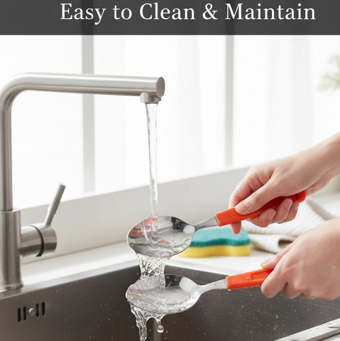 - The comfort grip on the handle is heat-resistant and easily cleaned in the sink or in the dishwasher.