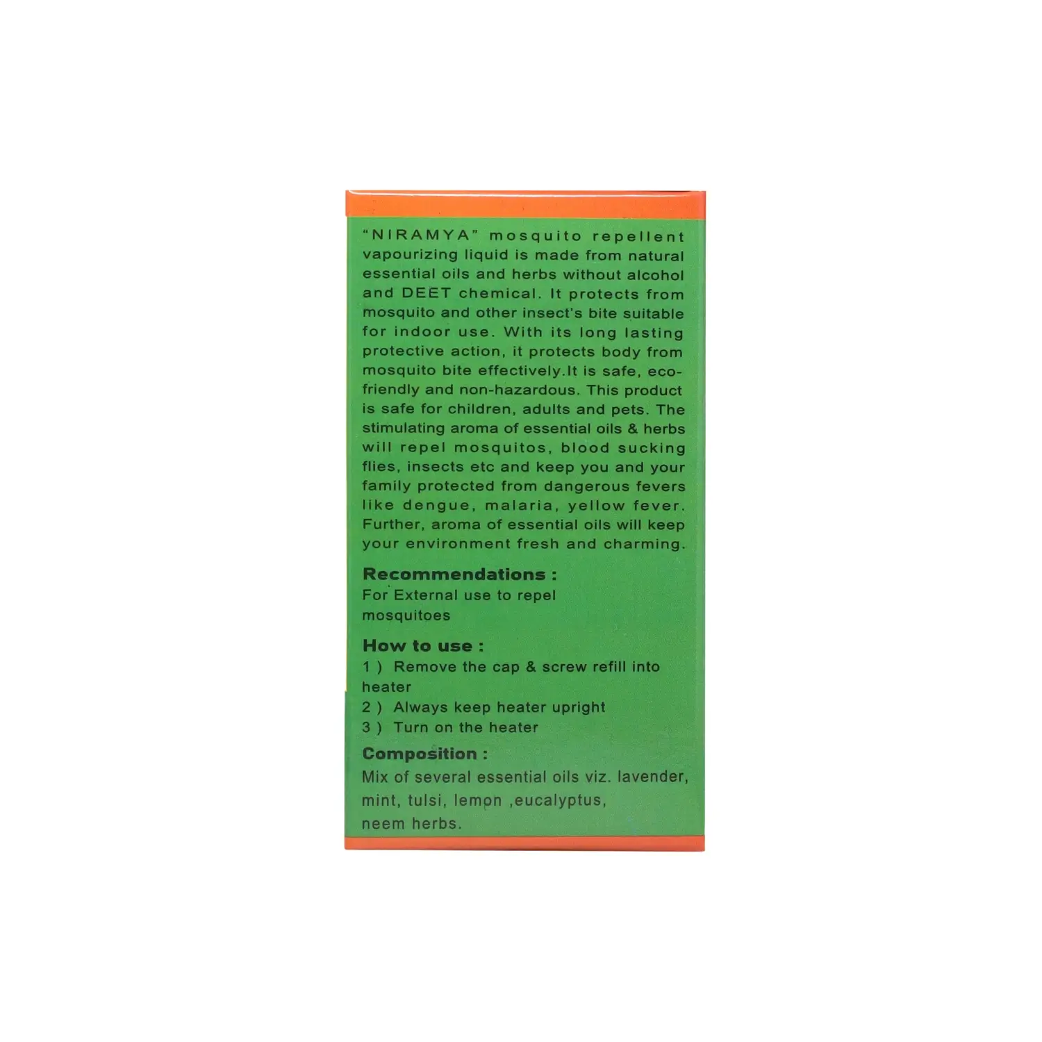 The NIRAMYA Mosquito Repellent Vaporiser is a specially formulated solution that effectively keeps mosquitoes at bay. This innovative product combines herbal essential oils 🌱 and natural exudates to provide long-lasting protection against dengue-carrying mosquitoes. It’s the perfect natural alternative to chemical-laden repellents!