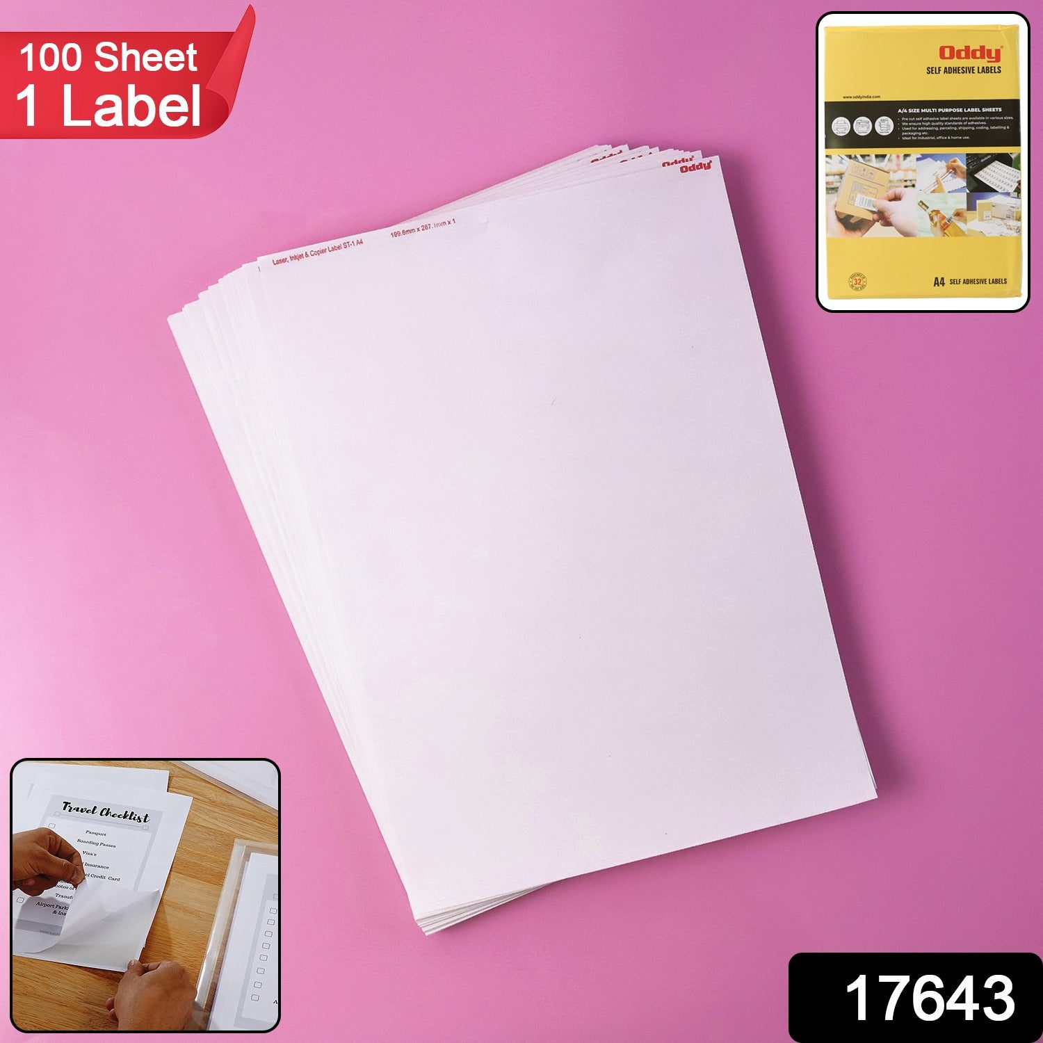 Oddy Self-Adhesive Label Sheets – A4 Full-Sheet Labels (100 Sheet)