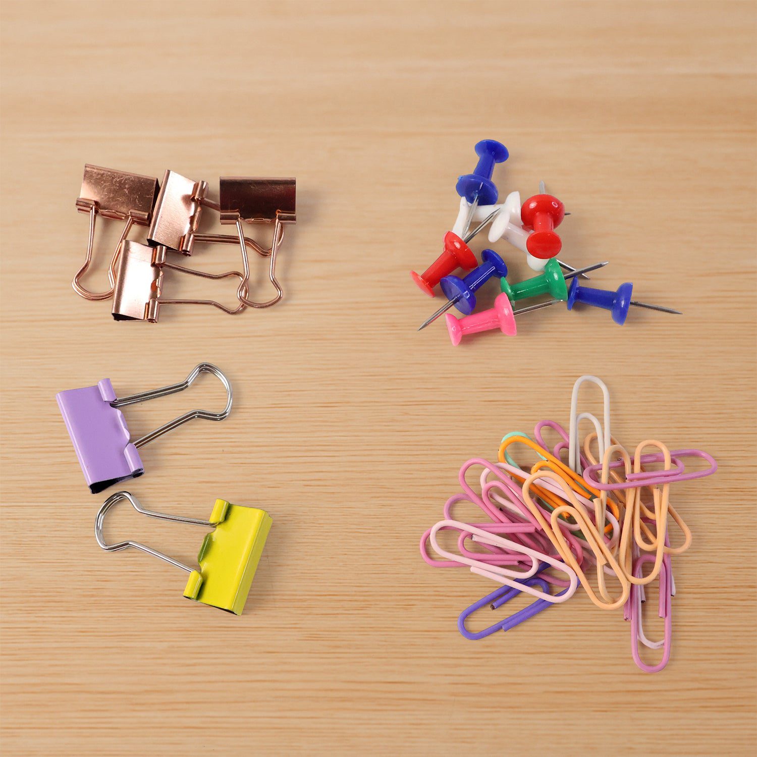 Complete Set: Includes paper clips, binder clips, and push pins, providing a versatile solution for organizing and securing documents.