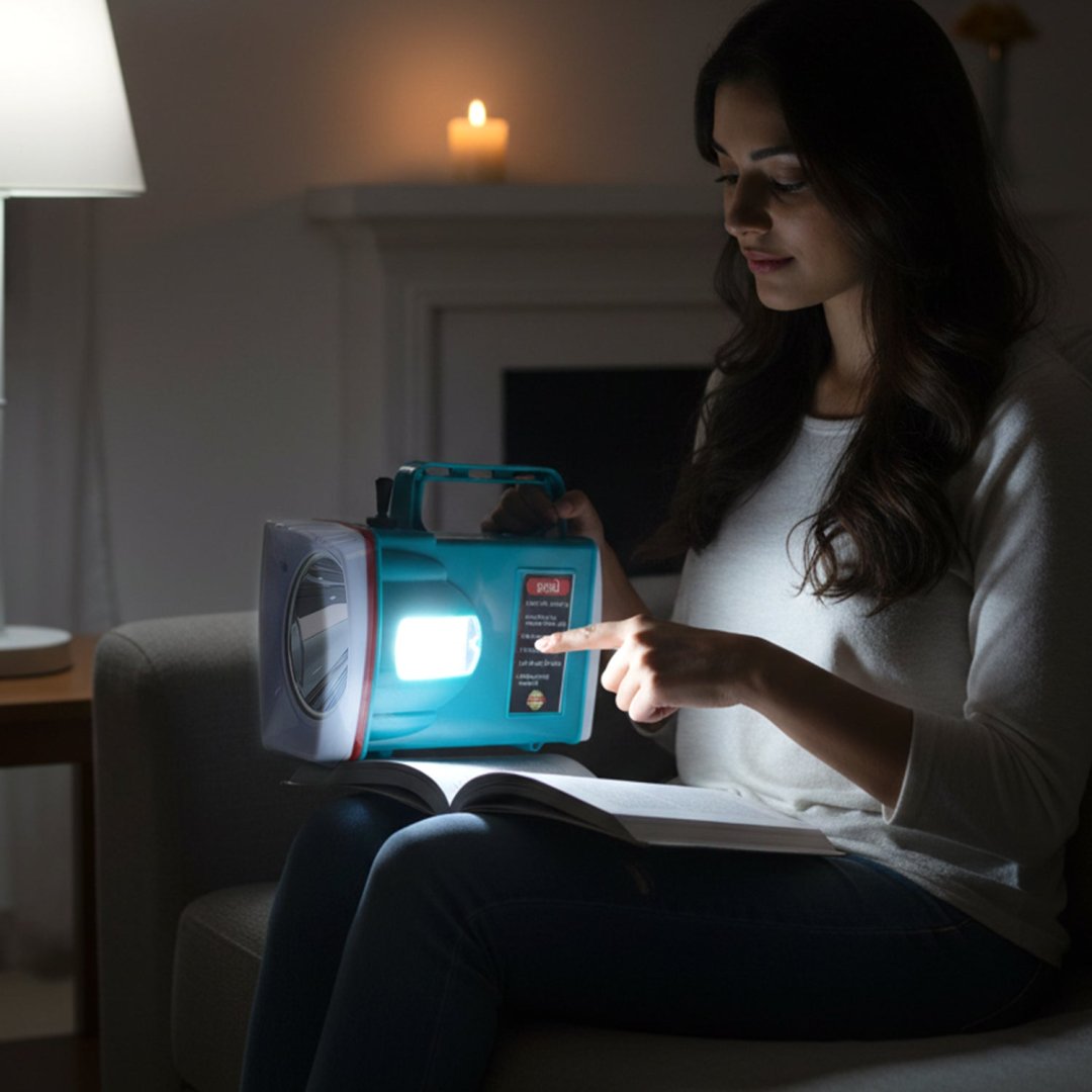 Stay prepared for any situation with this 7800mAh rechargeable LED emergency searchlight designed for powerful and long-range illumination. Equipped with a high intensity front beam and advanced lighting performance, this torch ensures bright visibility in dark environments. The built-in auto cut charging feature enhances battery safety and durability during charging cycles. Its sturdy body and comfortable handle make it easy to carry for outdoor adventures, security duties, and emergency use. Ideal for homes, farms, warehouses and travel, this reliable searchlight delivers dependable lighting whenever required.