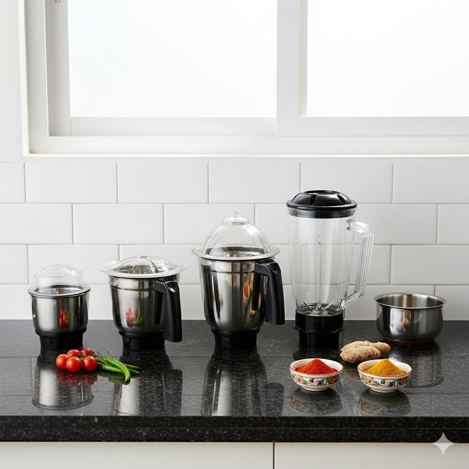 Jars: 4 (Stainless Steel + Polycarbonate)