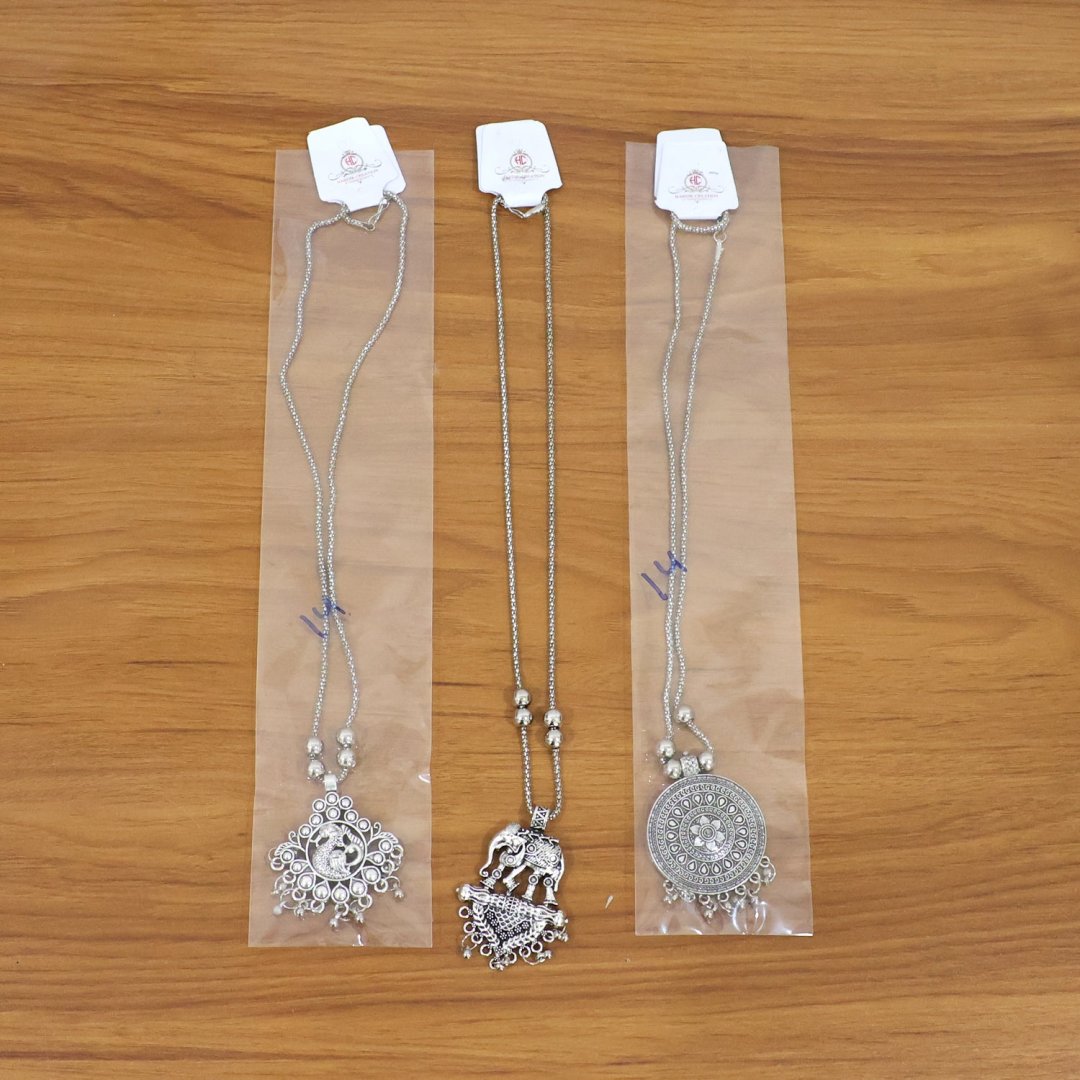 Oxidised Silver Finish Traditional Pendant Necklace – Mix Design (1 Pc)