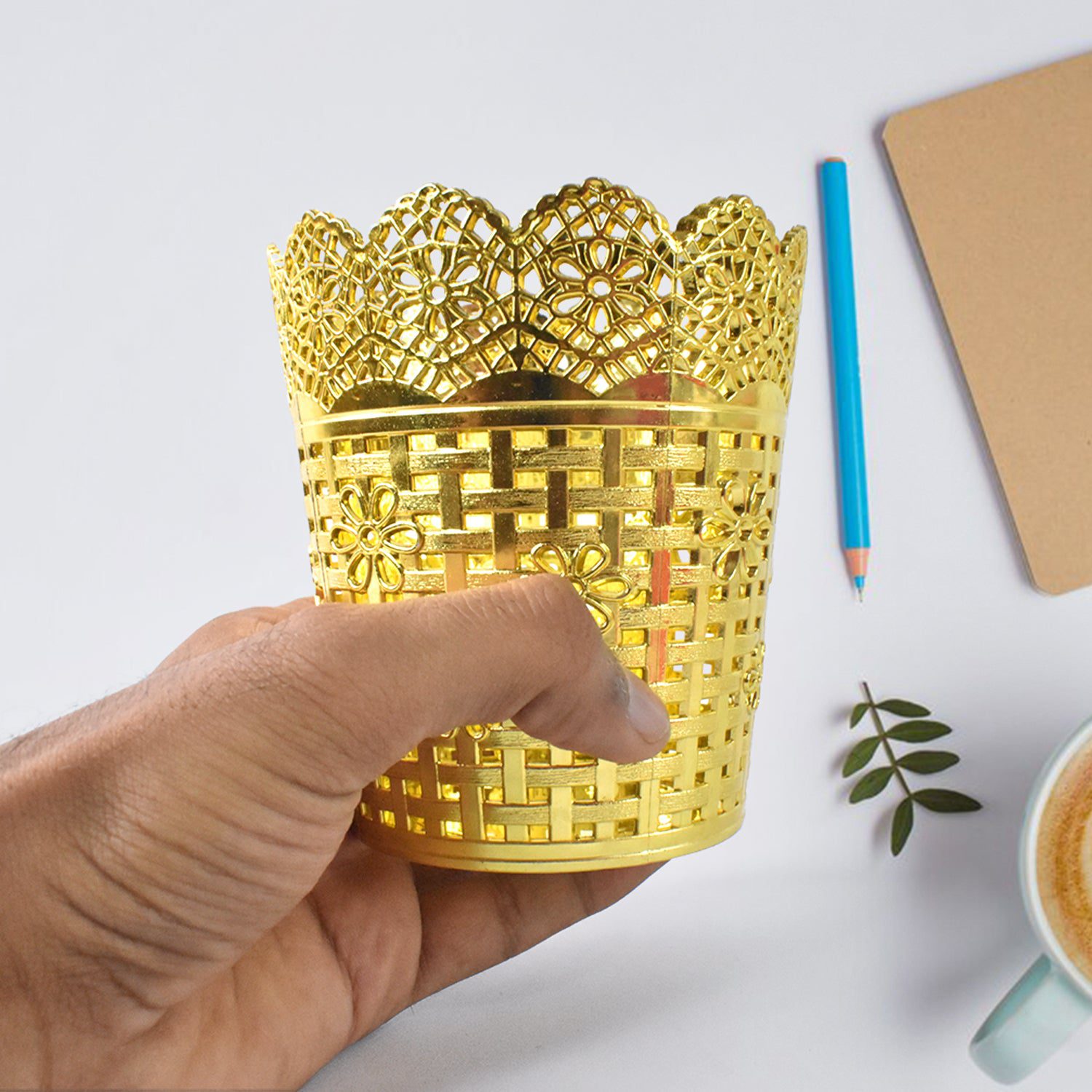pen holder, pencil stand, stationery organizer,pen stand,table pen pot, marker stand,study table organizer,pencil holder,golden pen stand, floral design pen holder, metal look desk holder,royal style pen stand