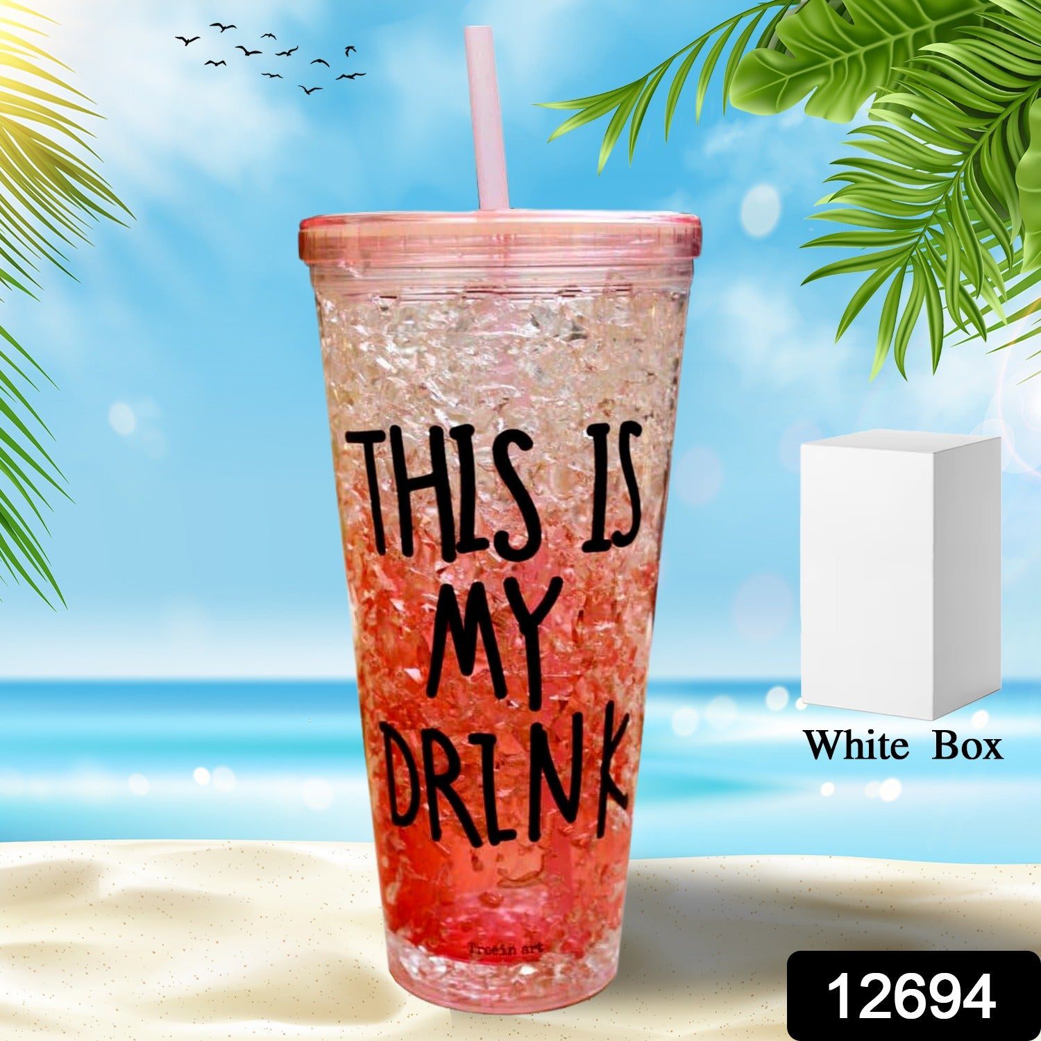12694 Plastic Creative Cold Drink Cup, Reusable Tea Coffee Tumbler with Lid and Straw, Double Wall Plastic Drinking Sport Bottle, Travel Tumbler