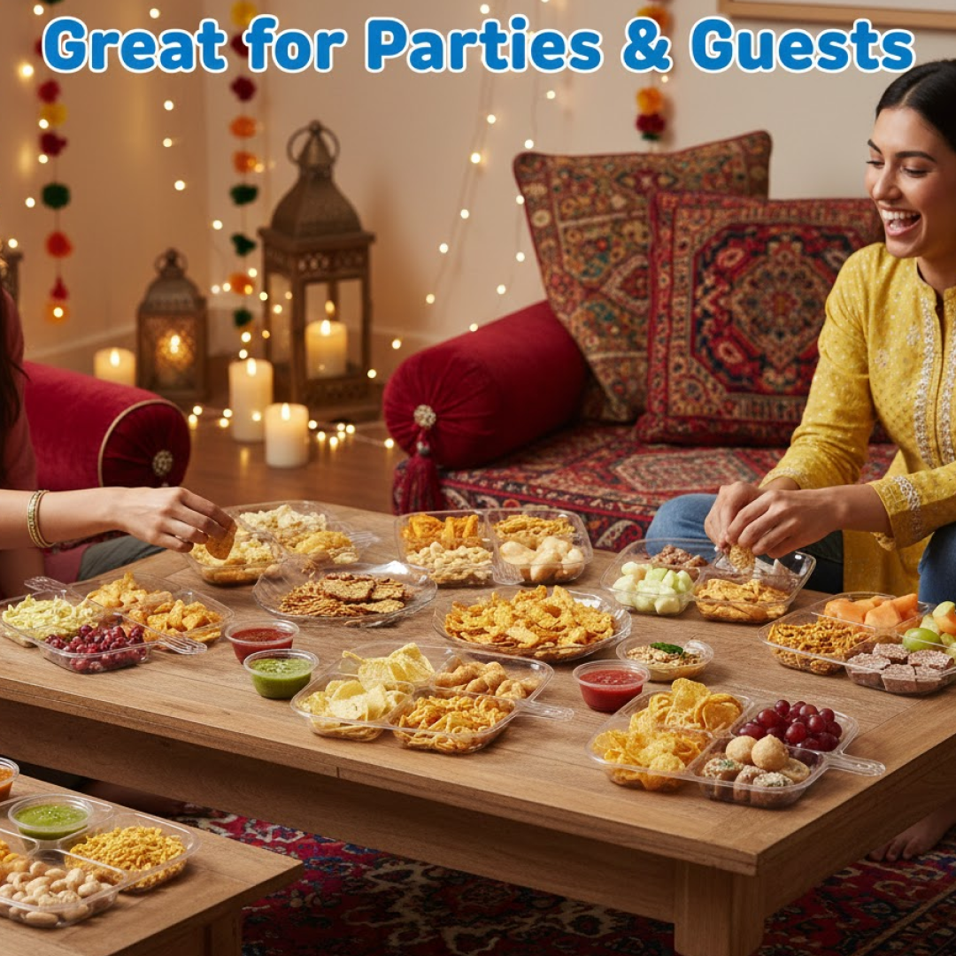 - 【Segmented Design】: Veggie trays for serving ensures no cross flavouring, allowing you to serve various foods at once without worrying about taste confusion.