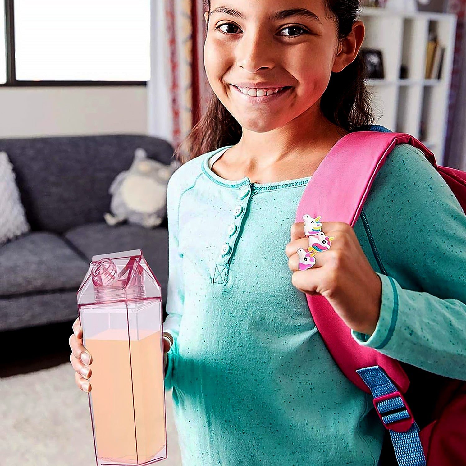 Plastic Milk Carton Colorful Clear Water Bottle, 17 Oz Portable Milk Box
