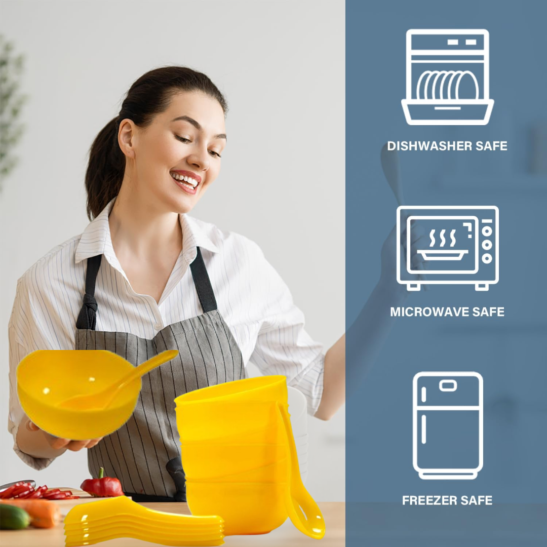 Plastic Soup Bowl & Spoon Set for Kitchen (6-Pcs)
