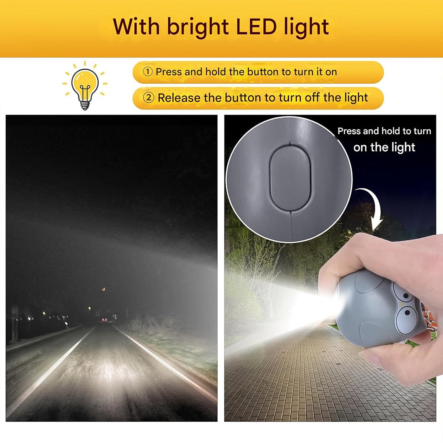 Suitable as a personal security accessory for women, children, students, elderly and night workers