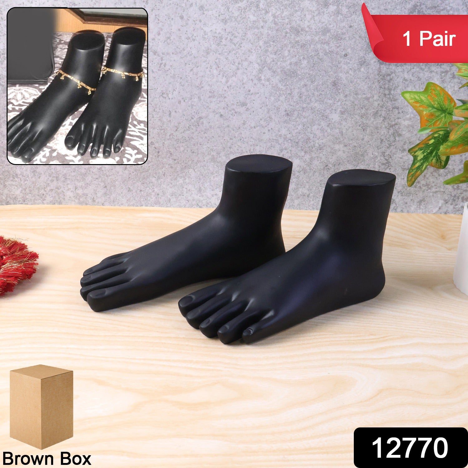 Premium Black Foot Mannequin Display Stand for Anklets, Payal, Toe Rings & Jewellery Photography – Life-Like Pair of Foot Model Props for Showrooms, Exhibitions, E-Commerce Shoots & Retail Counter Decoration (1 Pair)