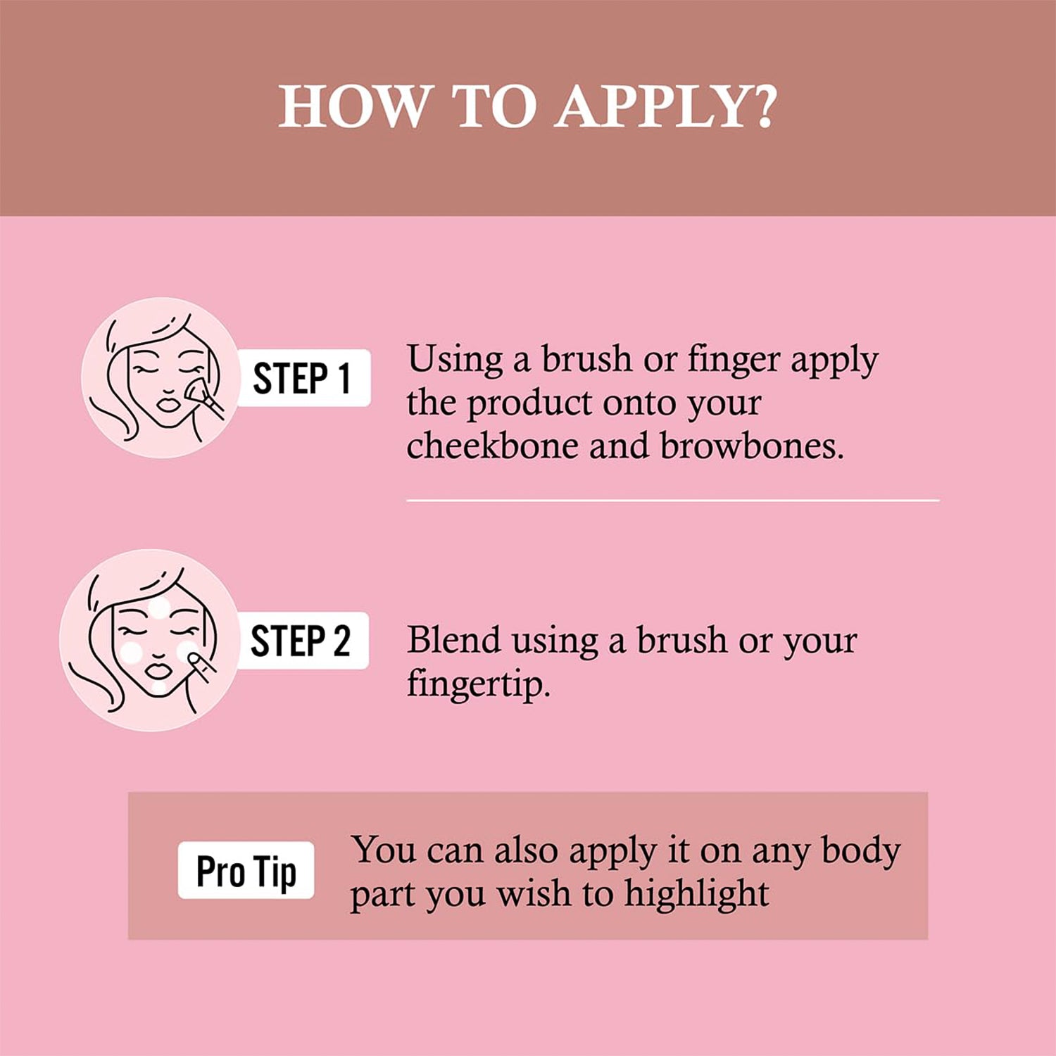 Ideal for highlighting cheekbones, brow bone, nose, chin and body highlights.